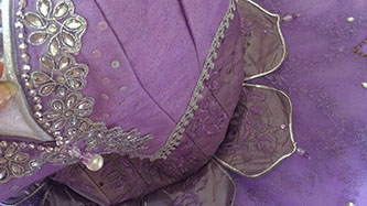 Often highly decorated, the tutu's top plate is separately prepared and fixed to the tutu base before the bodice is fixed in place. The plate is sewn to the top tutu layer to make sure that it stays in place, even during partnering work.