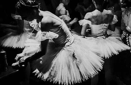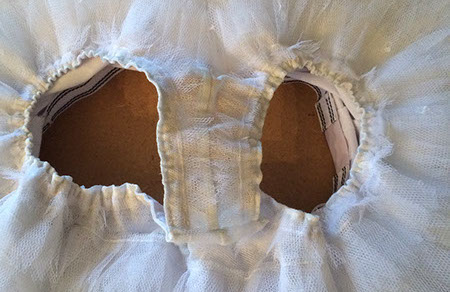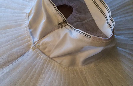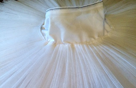 Shown here worn with a separate bodice with its own attached overskirt - the hybrid tutu provided a solution to quick changes and tutus being used on many different dancers during the show. These tutus look like traditional ones underneath, more professional than the lycra versions but have the advantage of fitting lots of bodies!