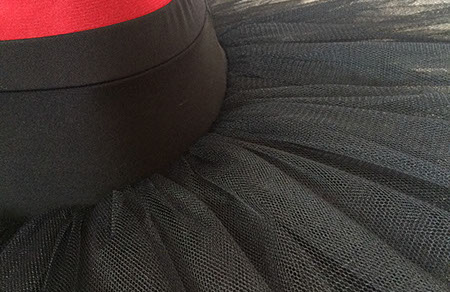 This is pull-on style made on a lycra knicker, with 1 inch elastic waist band. 6-8 layers of gathered netting, elasticated leg openings, hooped, and hand tacked through the layers. Choose from black or white.