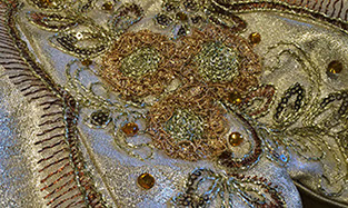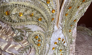 Lots of options will be discussed at the design stage, the possibilities are endless, chose different top lines, inset panels, sleeves, cuffs etc. As with the top plate the bodice is often highly decorative with lots of things to make the costume sparkle and catch the eye.